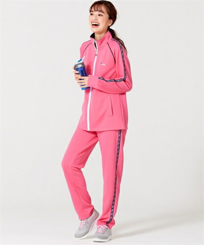 FILA パンツ ストレート 大きいサイズ レディース UVカット 吸汗速乾 ラインテープ使い ジャージ 消臭テープ付 夏 ピンク/黒 4L/5L/6L ニッセン