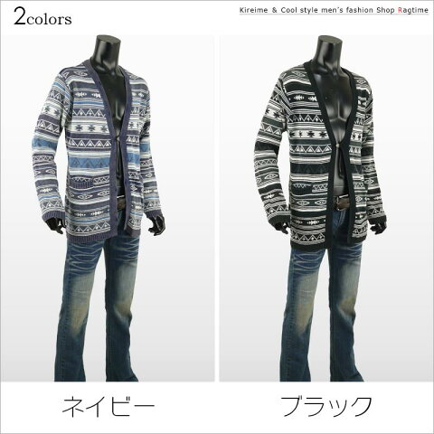 ネイティブ柄の硫化ジャガードニットのカーディガン。